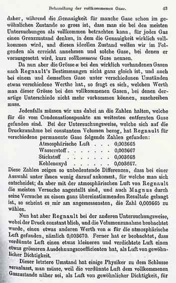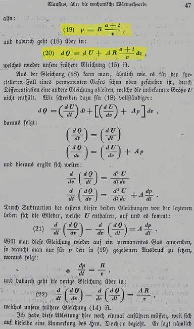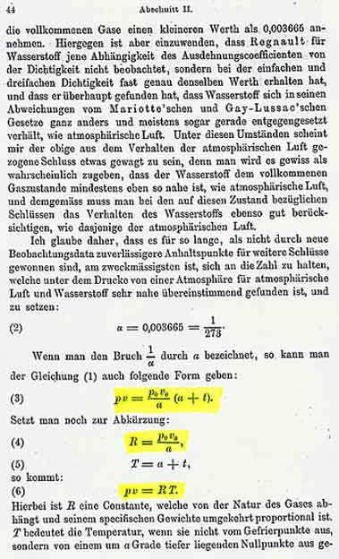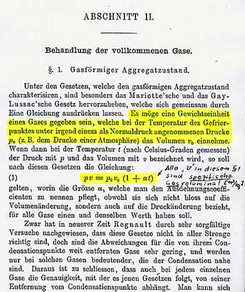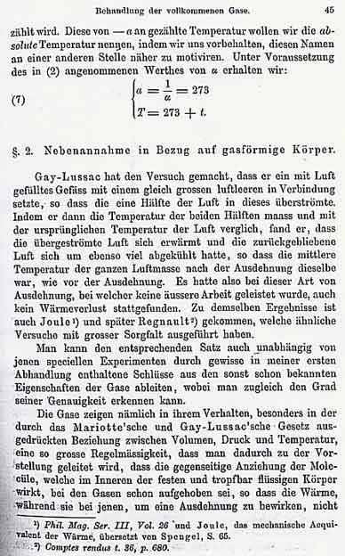 Für andere Aggregatzustände gelten die Formeln nicht. Für den Interessierten: Im Text gibt Clausius auch den Hinweis auf die Quelle des absoluten Nullpunktes der Temperatur und an seinen "Glauben".