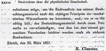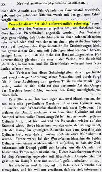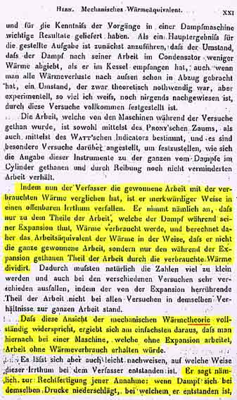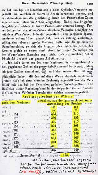 An anderem Ort des gleichen Berichts lässt Clausius verlauten, Hirn's Anschauung "widerspricht der angenommenen Theorie". Die Annahme steht bei Clausius also über der Messung. Kant lässt grüßen!
