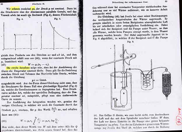 Entwicklung des heute noch gebräuchlichen Formelgutes durch Clausius, maßgeblich gestützt durch die Messergebnisse Joules. Anlage 5a, Anlage 5b, Anlage 5c, Anlage 5d, Anlage 5e.