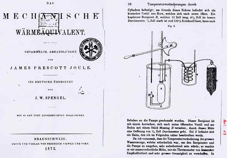 Joule hat die Messung tatsächlich gemacht und veröffentlicht. Anlage 17. Der Schönheitsfehler: Joule hat die Pressluft im Recipienten als eine Form mechanischer Energie vergessen, die Energieumwandlung ist also nicht abgeschlossen, denn die mechanische Energie "Pressluft" kann über mehrere Wege nochmals zur Wärmeerzeugung verwendet werden.