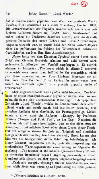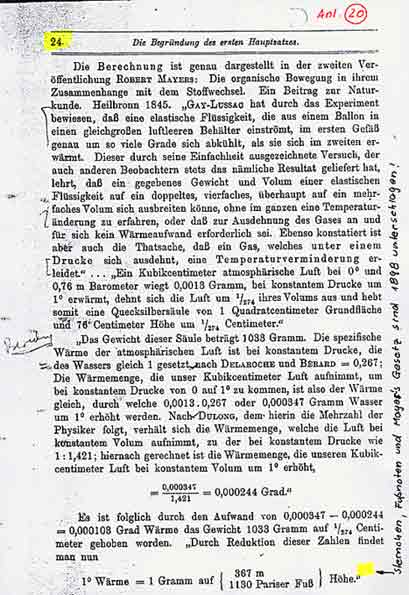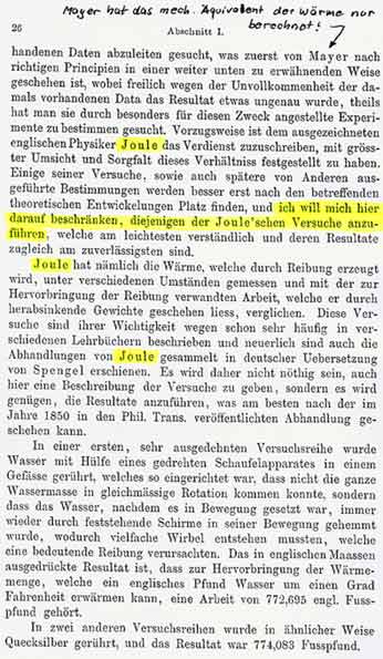 "Denn streng genommen lehrt das Princip doch nichts als die Verwandelbarkeit der einzelnen Naturkräfte ineinander nach festen Zahlenverhältnissen, gibt aber durchaus keinen Aufschluß über die Art, wie diese Umwandlung zustande kommt". Anlage 1