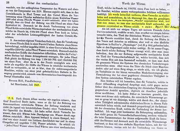 Schlussendlich soll nochmals auf Joule eingegangen werden. Für die behauptete Richtigkeit des Satzes über die Energieerhaltung bemühte er den lieben Gott. Anlage 24a, Anlage 24b